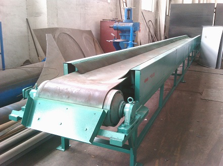 带式输送机是一种摩擦驱动以连续方式运输物料的机械。主要由机架、输送带、托辊、滚筒、张紧装置、传动装置等组成。它可以将物料在一定的输送线上,从初的供料点到终的卸料点间形成一种物料的输送流程。它既可以进行碎散物料的输送,也可以进行成件物品的输送。除进行纯粹的物料输送外,还可以与各工业企业生产流程中的工艺过程的要求相配合,形成有节奏的流水作业运输线。2. 工作原理